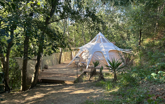 Chaque hébergement à Abriscadabra a été pensé pour vous offrir une expérience unique, entre confort et authenticité. Tous nos logements disposent d'un espace extérieur privatif et sont intégrés harmonieusement dans le jardin naturel du domaine.